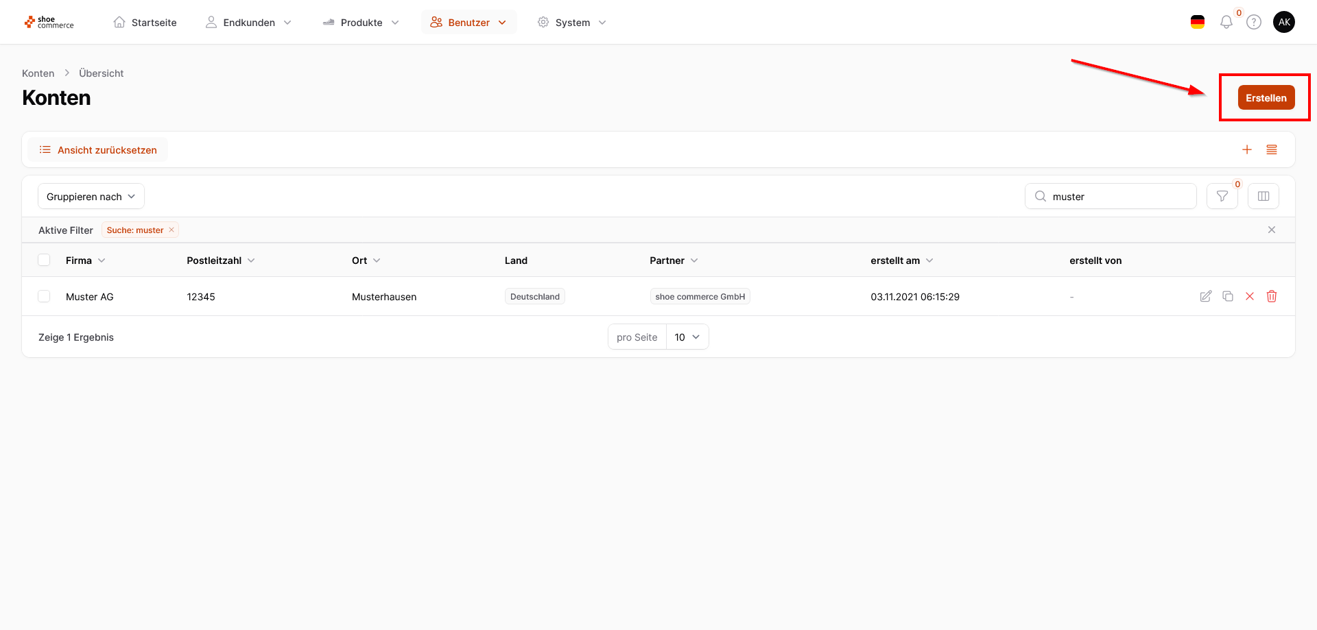 - Um ein vollständig neues Konto zu erstellen, klicken Sie in der Kontenansicht oben rechts auf den orangenen Button "Erstellen".