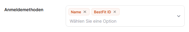 Um einzelne Anmeldemethoden später wieder entfernen zu können, klicken Sie bei der entsprechende Methode auf das "x". Mit Klick auf das Dropdown-Menü (Pfeil nach unten) können Sie wiederum neue Methoden hinzufügen.