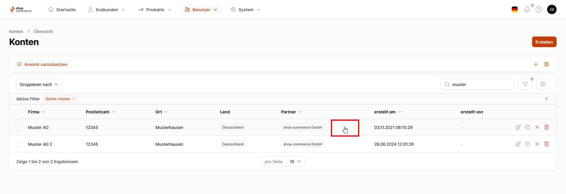 - Um das neue Konto final zu erstellen, klicken Sie zum Abschluss unten links auf "Erstellen". In der Kontenansicht befindet sich nun das soeben neu erstellte Konto, mit allen Einstellungen des Ursprungskontos.