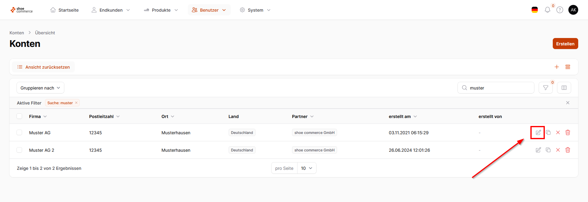 Bearbeiten von Konten