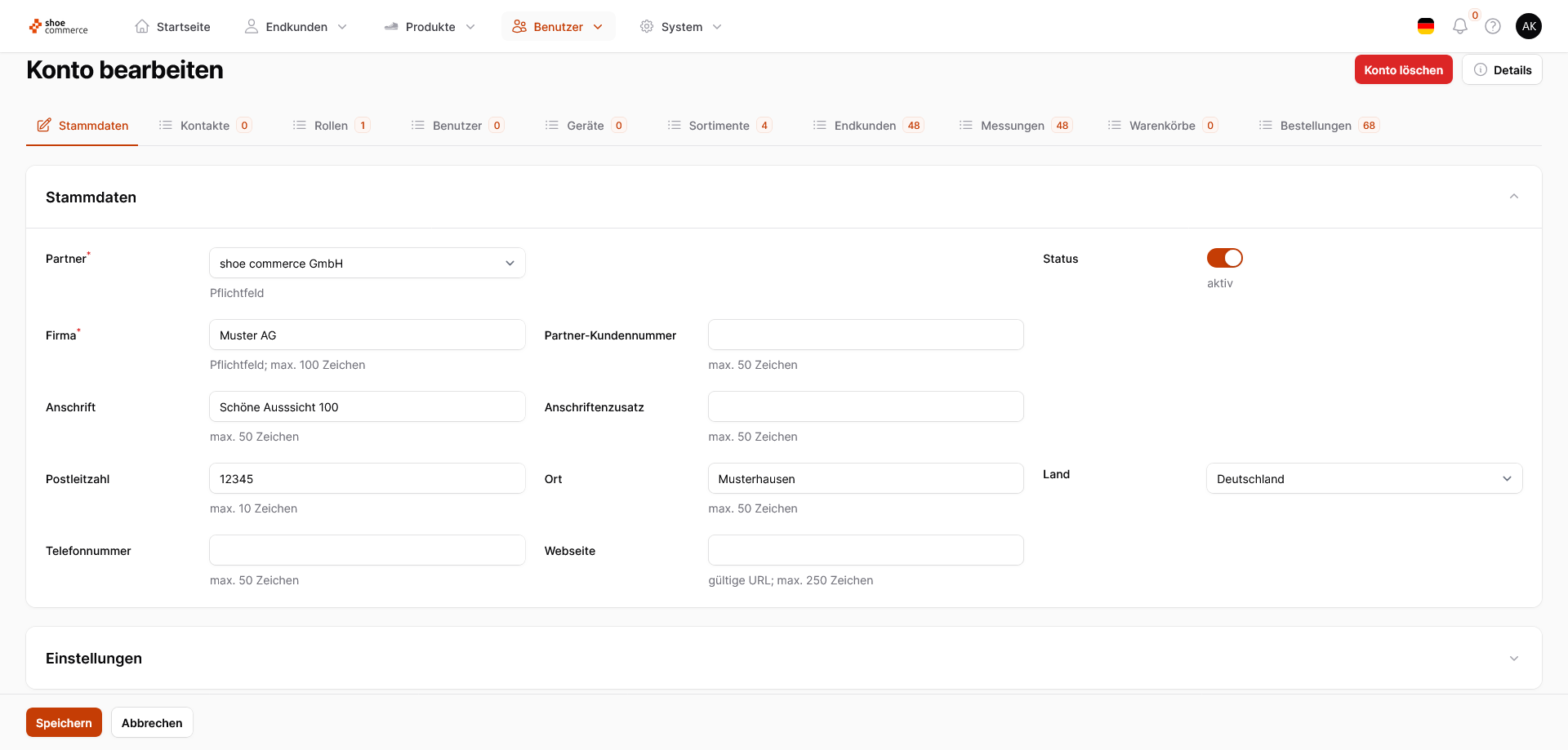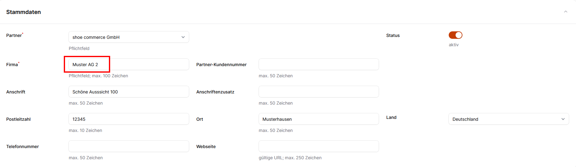 Im Bereich der Stammdaten werden Ihnen folgende Eingabefelder angezeigt: