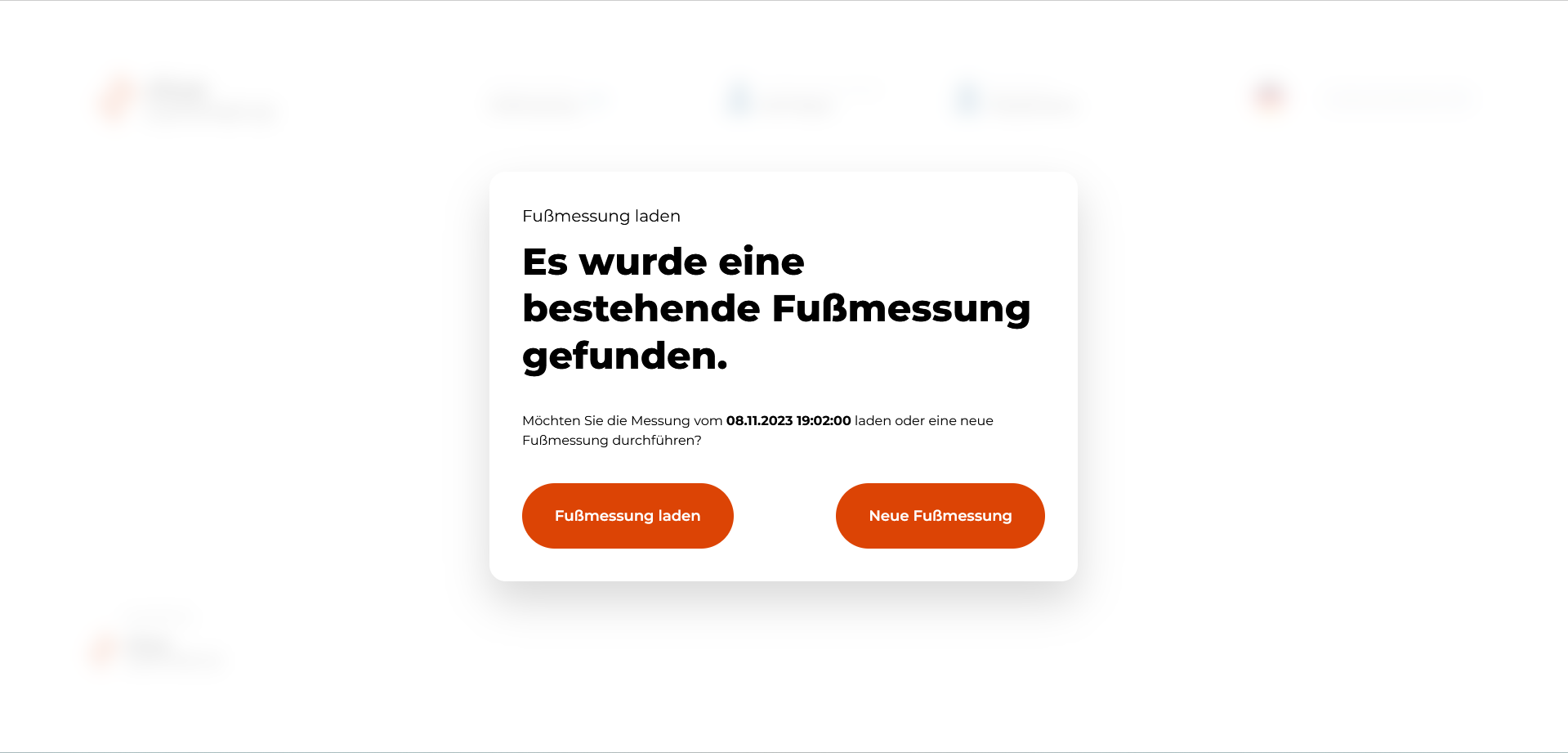 Bei Klick auf "Fußmessung laden" werden Sie im System automatisch auf die Seite der Fußanalyse weitergeleitet, andernfalls startet das System eine neue Fußmessung.