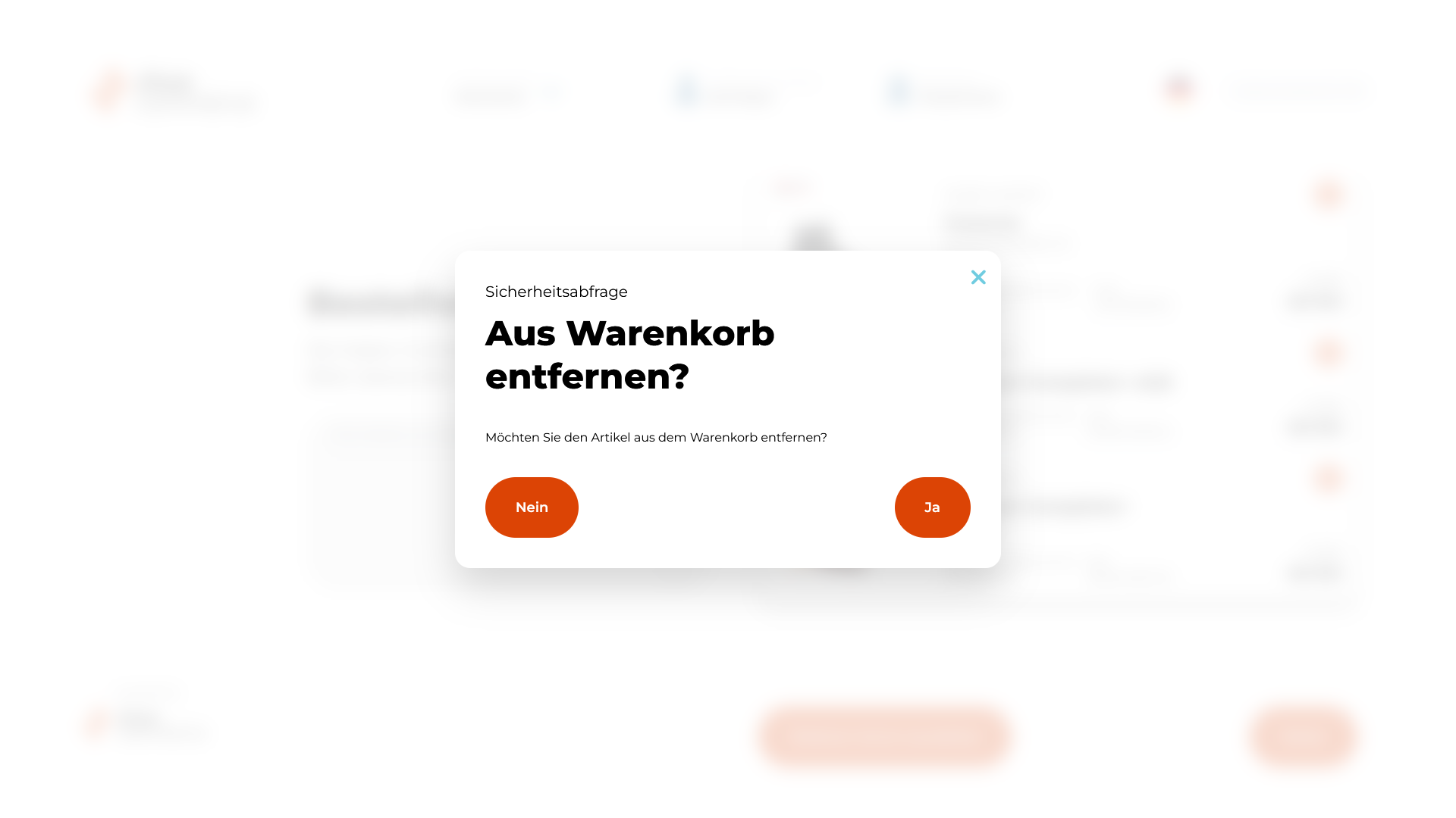 - Möchten Sie einen Artikel durch Klick auf das Mülleimer-Symbol aus dem Warenkorb entfernen, erscheint nochmals eine Sichterheitsabfrage, ob Sie dies auch wirklich tun möchten. Mit Klick auf "Ja" wird der Artikel aus dem Warenkorb entfernt. Hier im Beispiel der Artikel "Secosol Complete+ high".