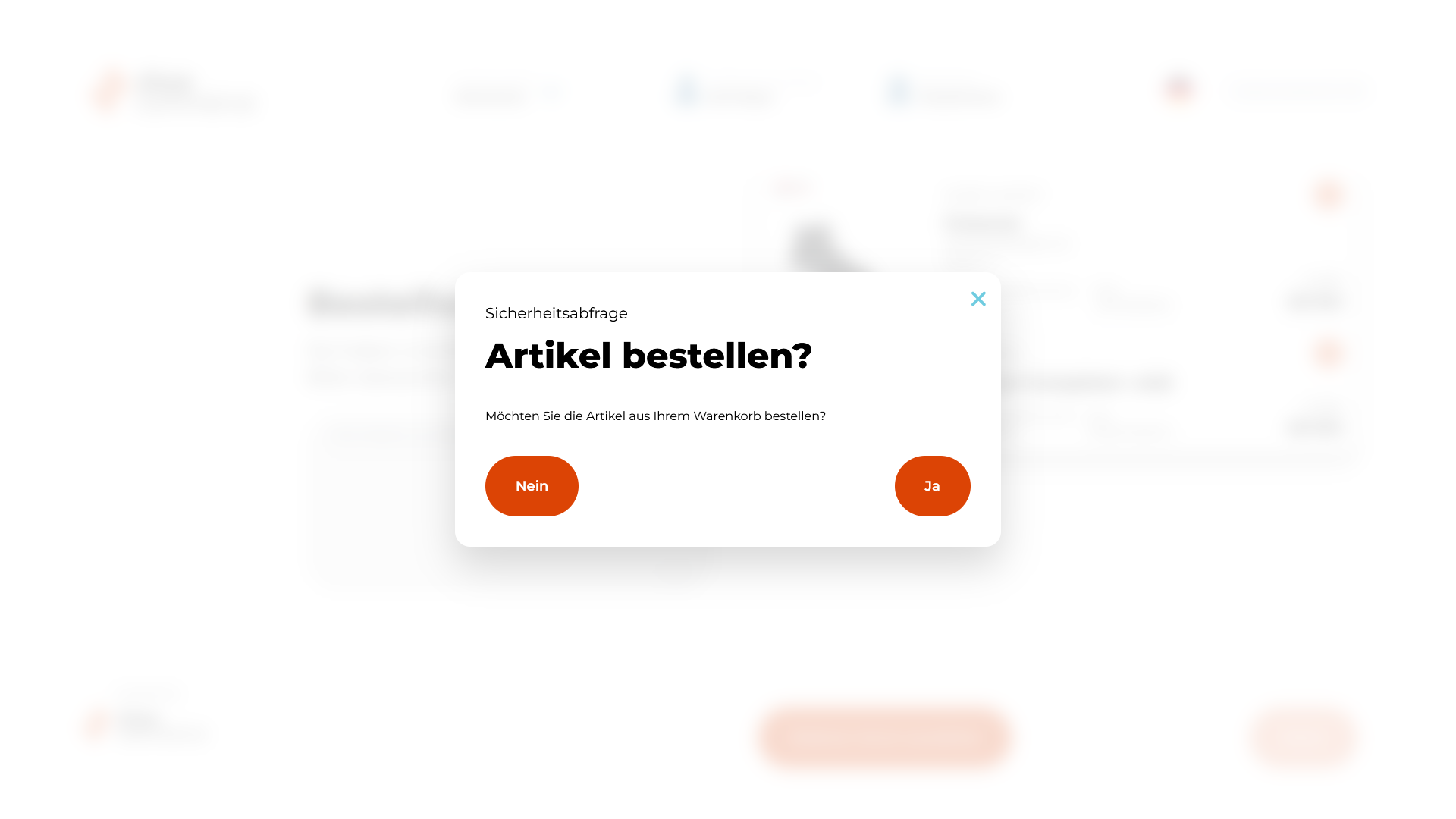 - Auch hier werden Sie zur Sicherheit nochmals gefragt, ob Sie den Warenkorb wirklich bestellen möchten, oder nicht. Mit Klick auf "Nein" werden Sie zurück zum Warenkorb geleitet, ohne eine Bestellung auszulösen. Ein Klick auf "Ja" hingegen wird die Bestellung final durchführen.
