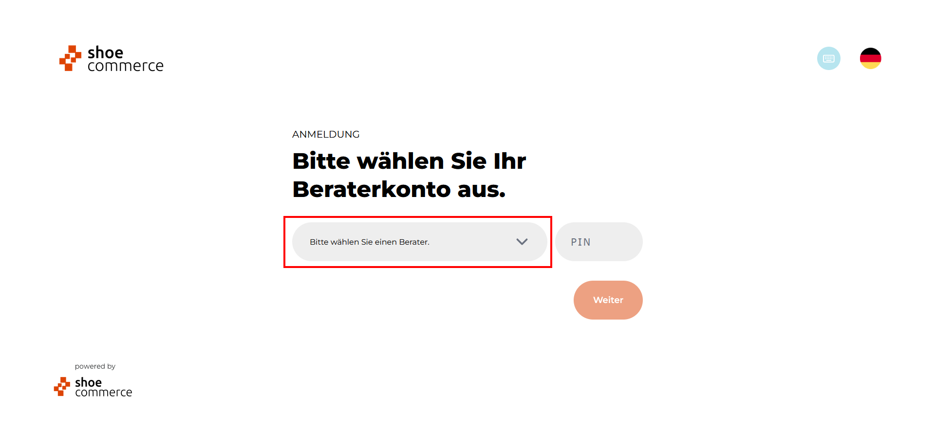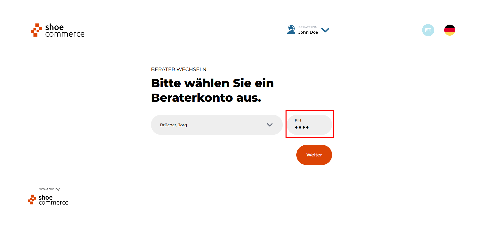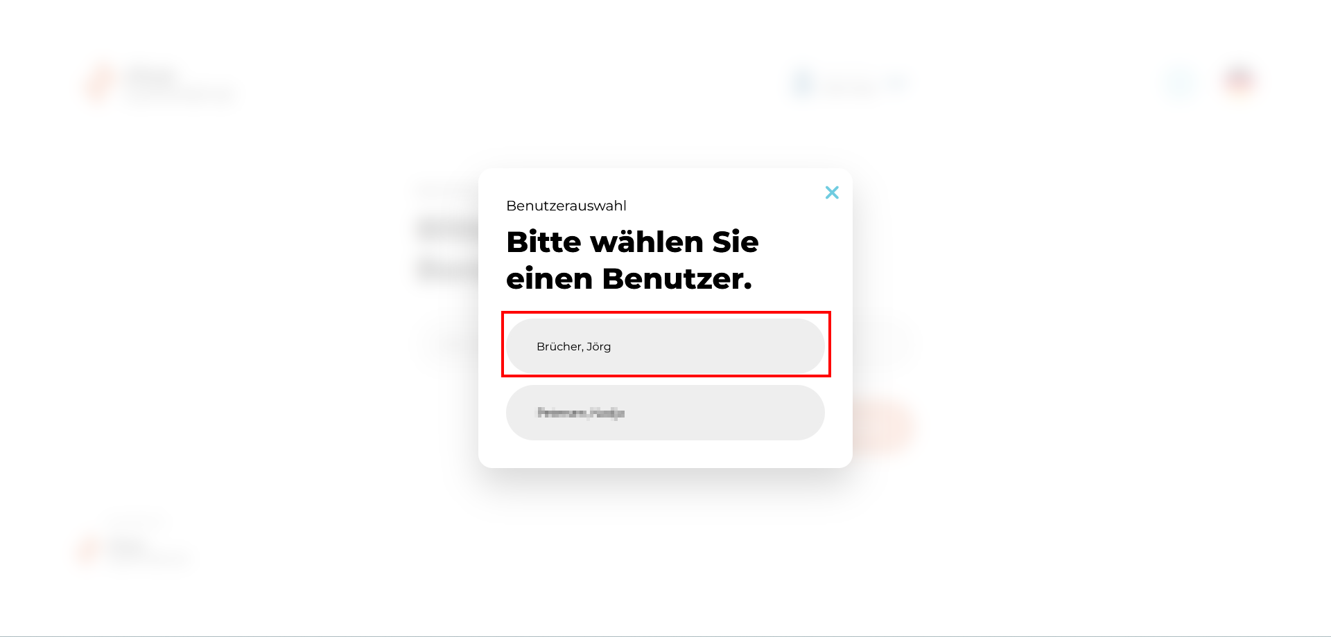 - Nach Auswahl des Benutzers erscheint dieser im Dropdown-Menü. Bitte geben Sie nun Ihre PIN ein und Klicken auf "Weiter".