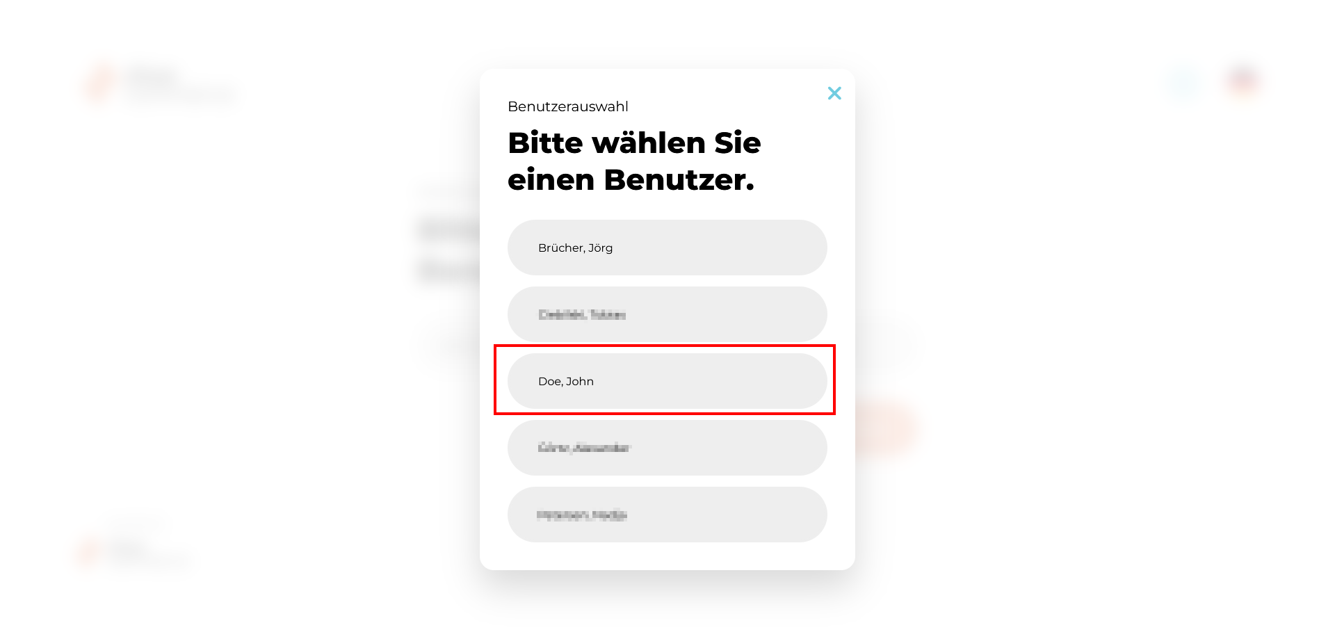 - Bitte wählen Sie nun den gewünschten Benutzer aus indem Sie hierauf Klicken. In unserem Fall wählen wir John Doe.