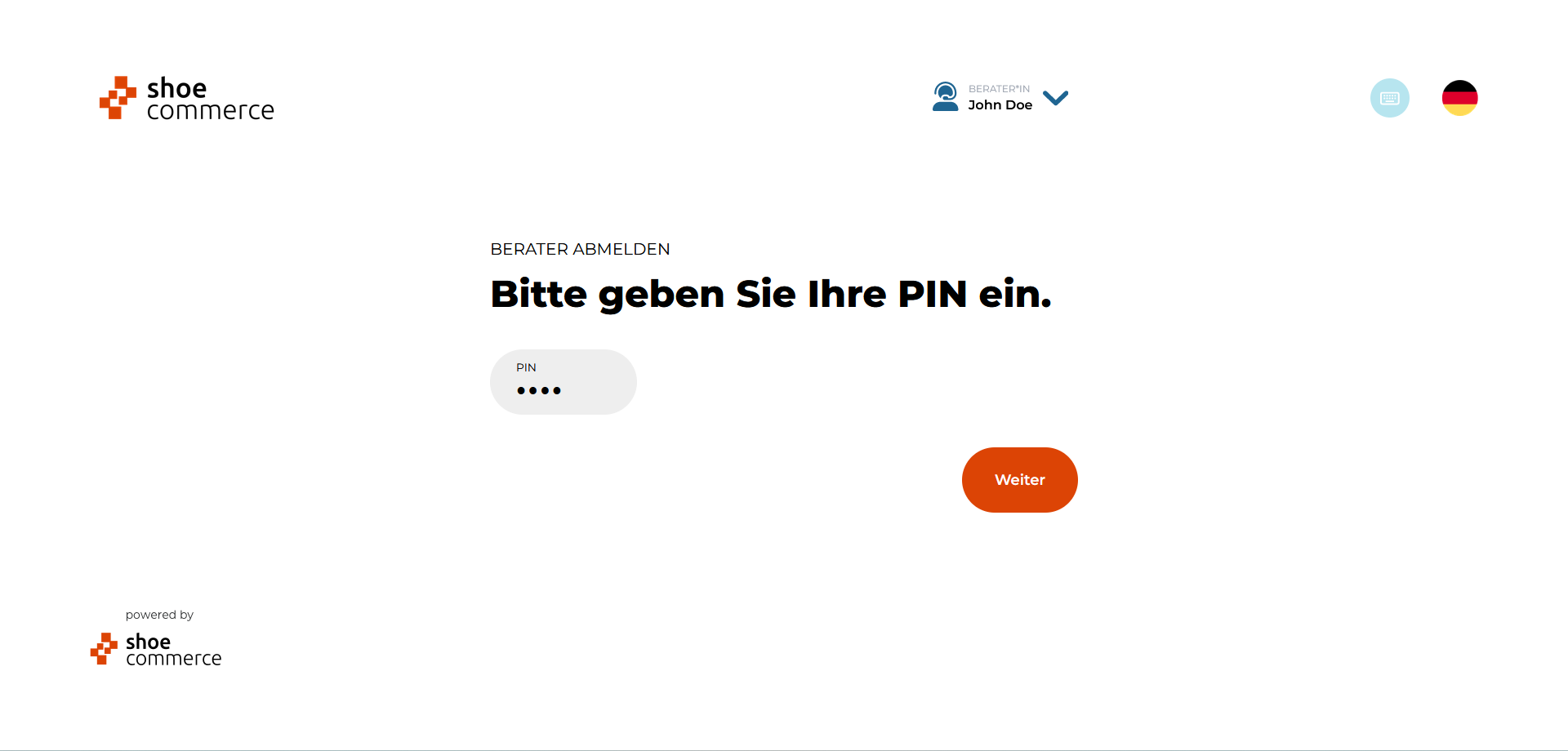 - Aus Sicherheitsgründen werden Sie nun dazu aufgefordert die PIN des aktuell angemeldeten Beraters einzugeben. Nach deren Eingabe klicken Sie bitte auf "Weiter" um die Abmeldung durchzuführen.