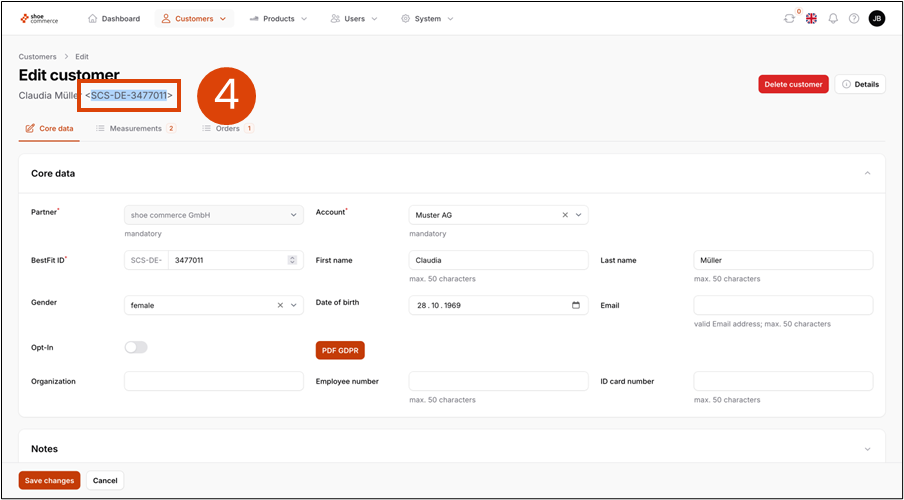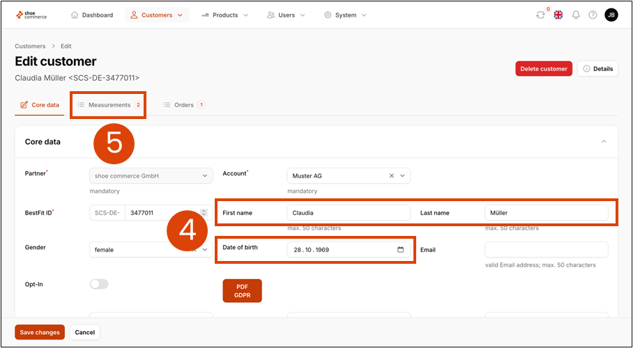 - Read the first and last name as well as the date of birth (here: Claudia Müller, October 28, 1969)