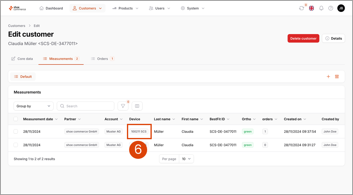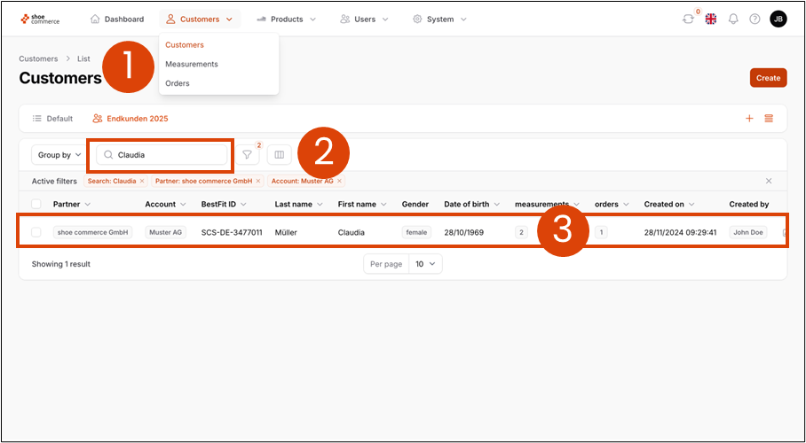 - Search for the customer using the full-text search field (here: Claudia)